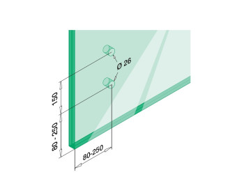 - benötigte Glasbohrung Ø 26 mm, Achsabstand 150 mm